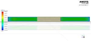 The third benchmark geometry consists out of a rectangular duct, which includes a set of four plates arranged in the main flow direction. This design allows investigating flow dynamics in conditions that to some degree simulate the flow between prismatic cells.