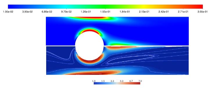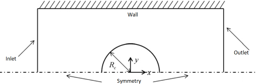 Fig. 6 Schematic of the flow configuration for the benchmark case for Non-Newtonian fluid over a cylinder Wi =0.85